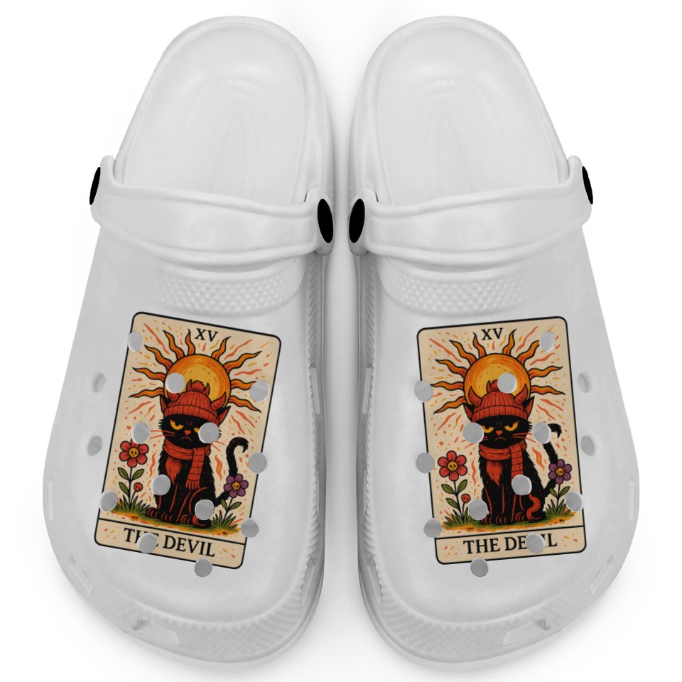 You're looking at the eye-catching product Devil Cat Tarot Card, Grumpy Cat Art, Mystical Clogs For Kids WHITE belong theme Clogs at Printblur