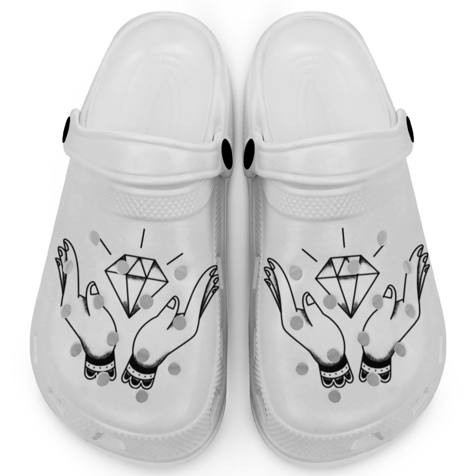 You are shopping for a stunning and trendy product Diamond in hand jewelry luxury bling bling Clogs For Kids WHITE belong theme Clogs at Printblur