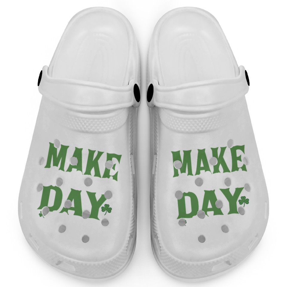 The item hot trend you're looking at is Diamond Nuggets Make St Patricks Day Magical Clogs For Kids WHITE belong theme Clogs at Printblur