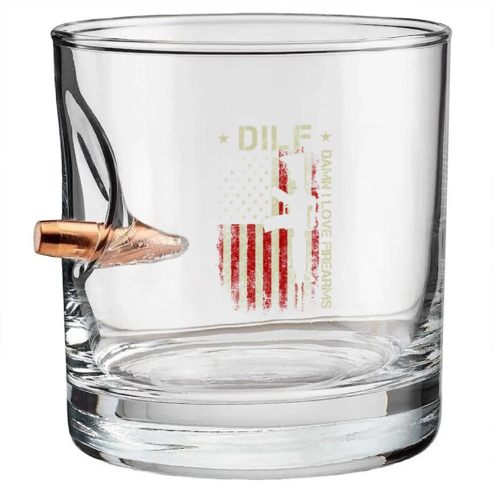 You're searching for a one-of-a-kind product DILF - Damn I Love Firearms Gun American Flag Bullet Whiskey Glasses For belong theme Bullet Whiskey Glasses at Printblur