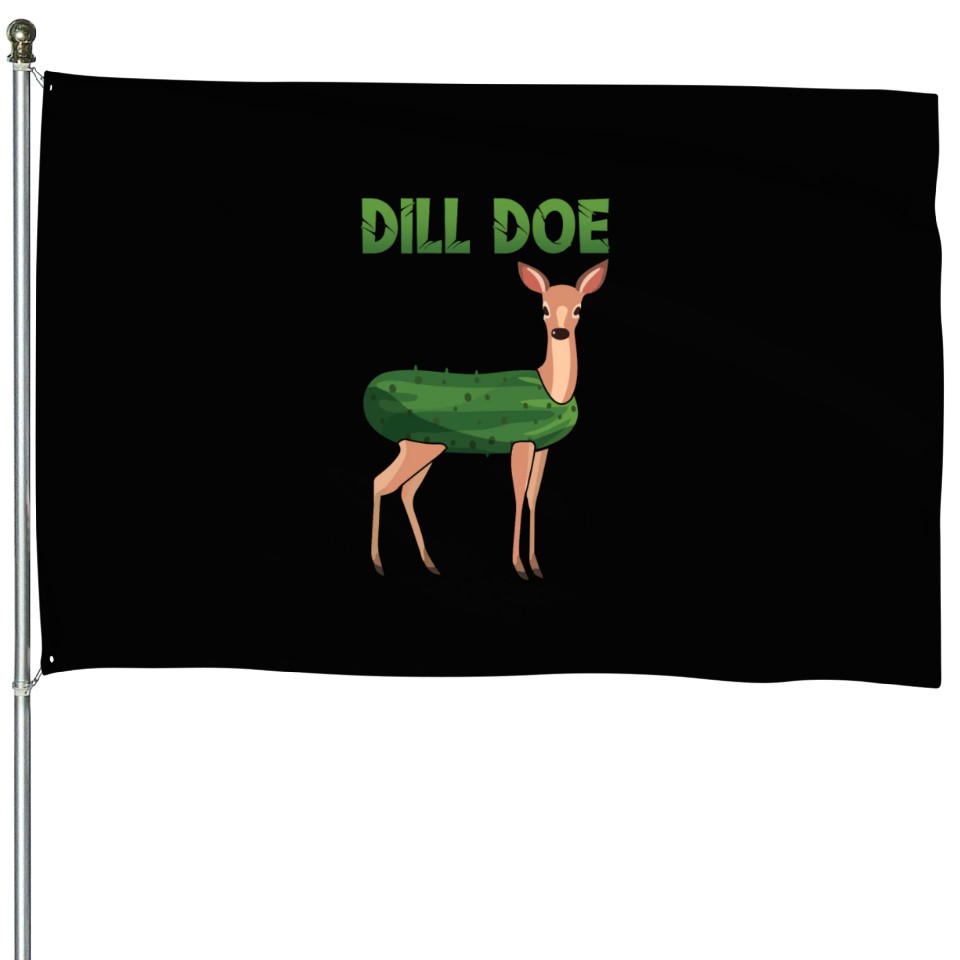 You're looking at the eye-catching product Dill Doe Funny Deer Pickle Pun Humor House Flags For Black belong theme House Flags at Printblur