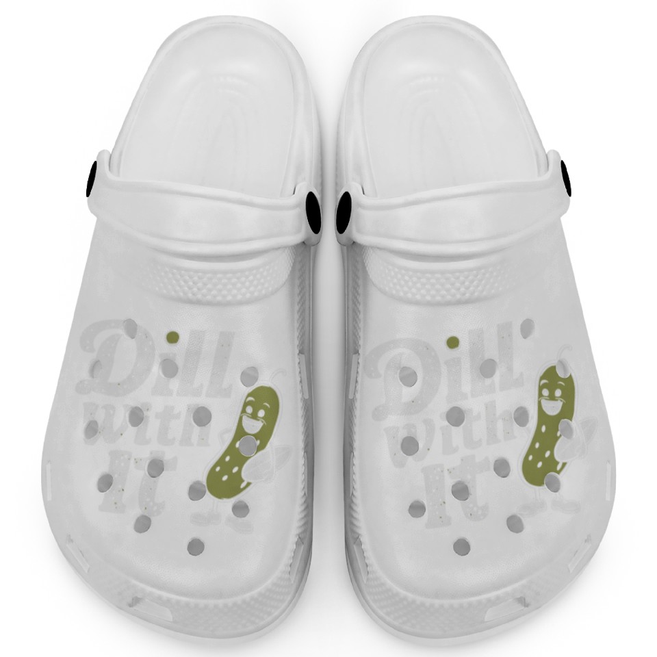 Own fascinating Dill With It Funny Pickle Character Clogs or see more Clogs products now from Printblur shop to enjoy your shopping time!