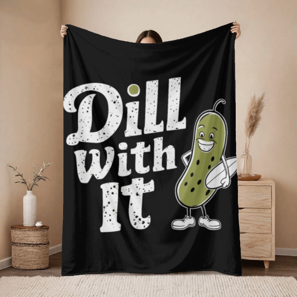 Buy stunning Dill With It Funny Pickle Character Throw Blankets or see more Throw Blankets products at Printblur right now to receive many amazing discounts!