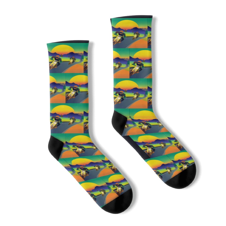 Shop for attractive Dirt Bike Rider Sunset Mountain Road Socks or see more Socks products on https://printblur.com right now!