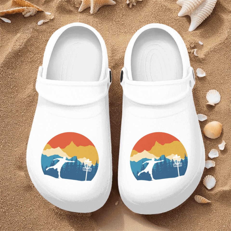 The product unique design you searched for is Disc Golf - Disc Golfing Player Ultimate Frisbee Nurse Clogs For Men WHITE belong theme Nurse Clogs at Printblur
