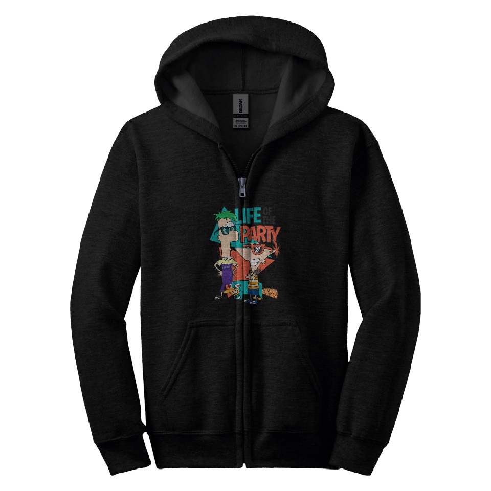 You're searching for a one-of-a-kind product Disneyss Phineas And Ferb Life Of The Party Cool Group shots Zip Hoodies For Youth Black belong theme Zip Hoodies at Printblur