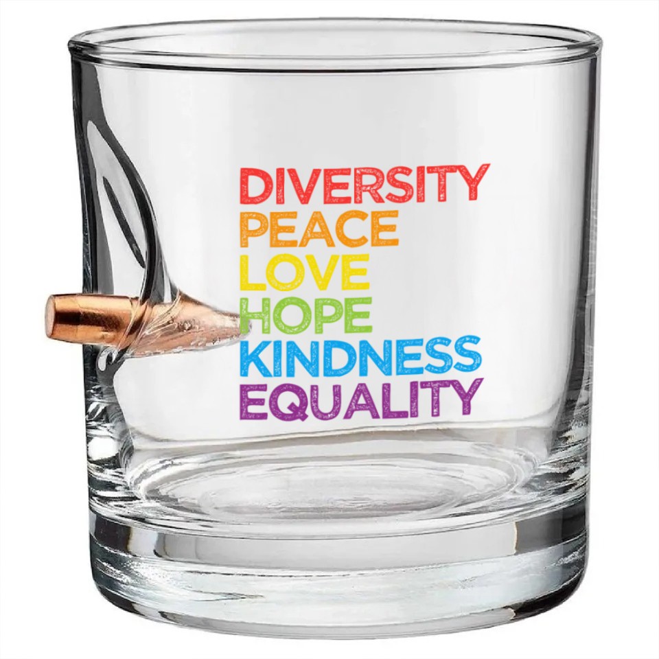 Diversity Peace Love Hope Kindness Equality LGBT Bullet Whiskey Glasses