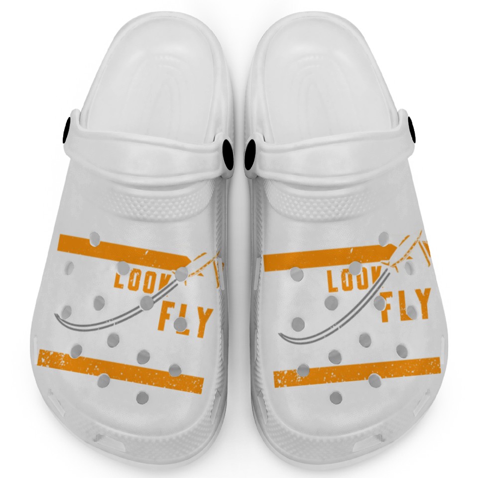 You're taking a peek at the product Do I Look Like I Fly Economy First Class Frequent Clogs For Kids WHITE belong theme Clogs at Printblur