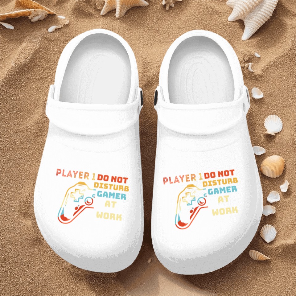 You are contemplating one of the best-selling products Do Not Disturb Gamer At Work-Gaming Lover Nurse Clogs For Men WHITE belong theme Nurse Clogs at Printblur