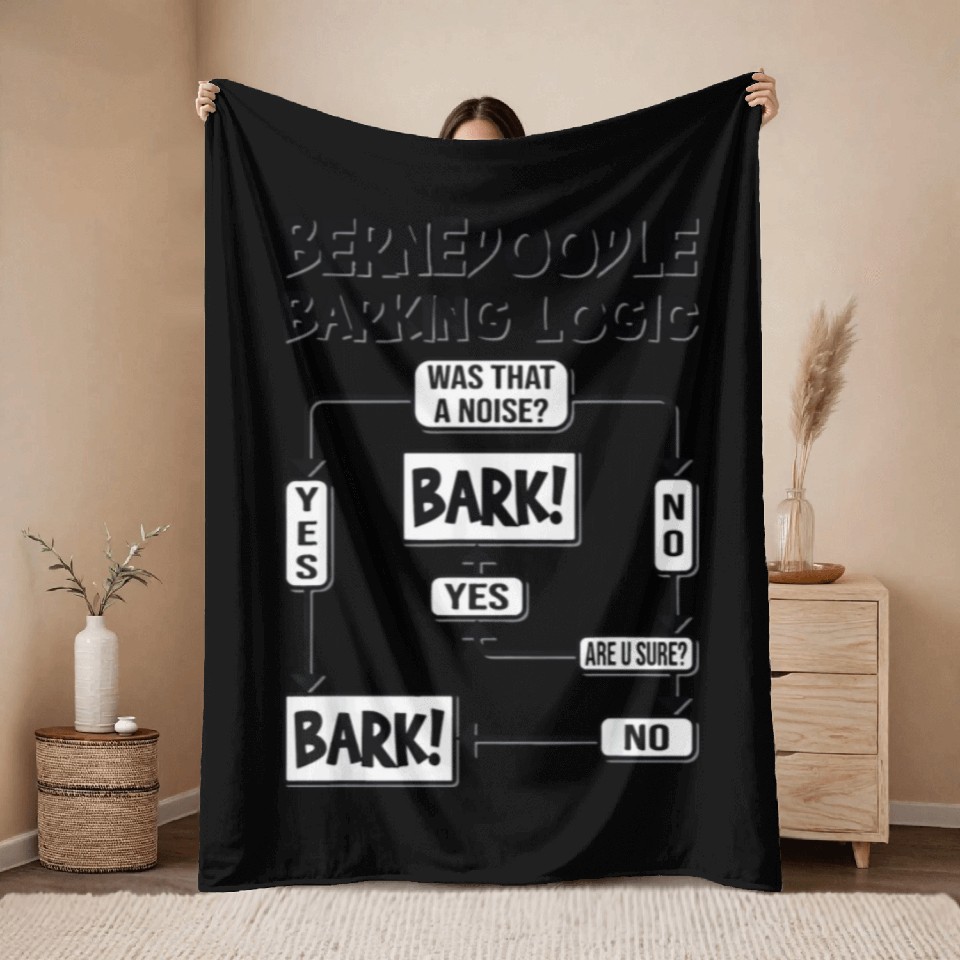 You are viewing one of the trendiest products Dog Barking Logic Funny Dog Idea Funny Bernedoodle Throw Blankets For Black belong theme Throw Blankets at Printblur
