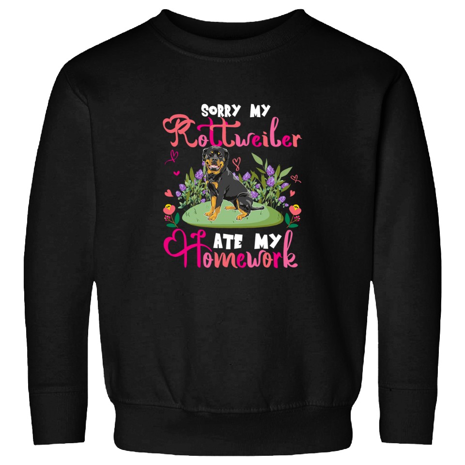 You're looking at the eye-catching product Dog Rottweiler Sorry My Rottweiler Ate My Homework Floral Dog Cute Student Sweatshirts For Kids Black belong theme Sweatshirts at Printblur