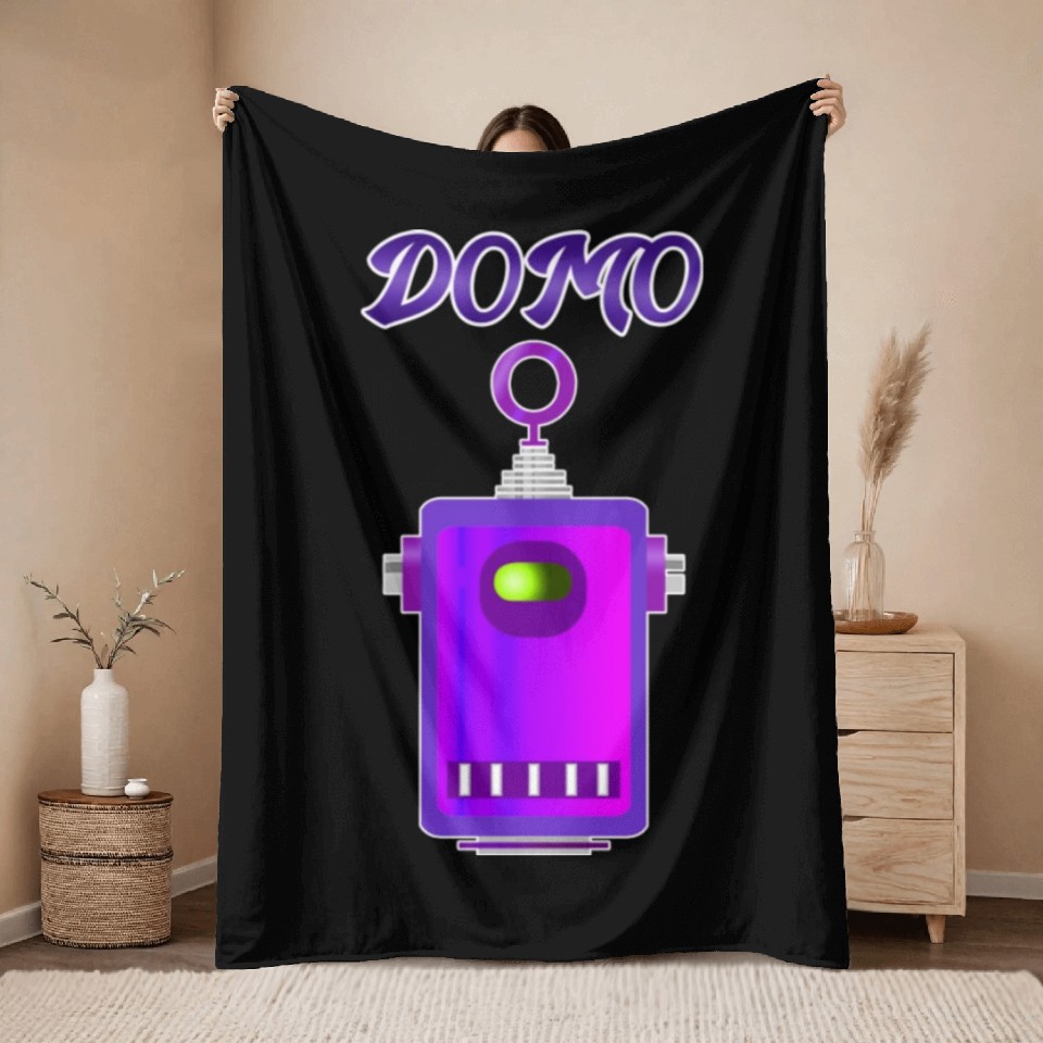 You are viewing an exclusive and elegant product Domo Robot 2 Purple 70s Throw Blankets For Black belong theme Throw Blankets at Printblur