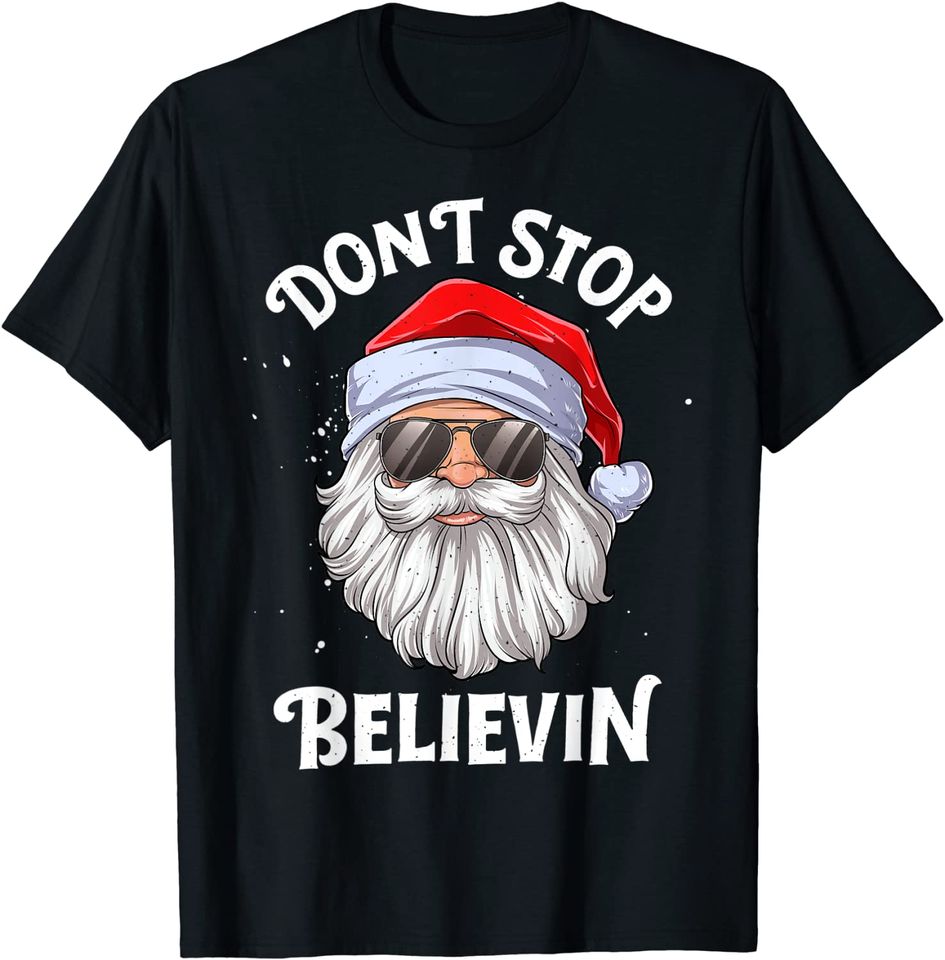 Shop for attractive Don't Stop Believin Santa Christmas Gifts T-Shirt or see more T-Shirts products right now on Printblur.com!