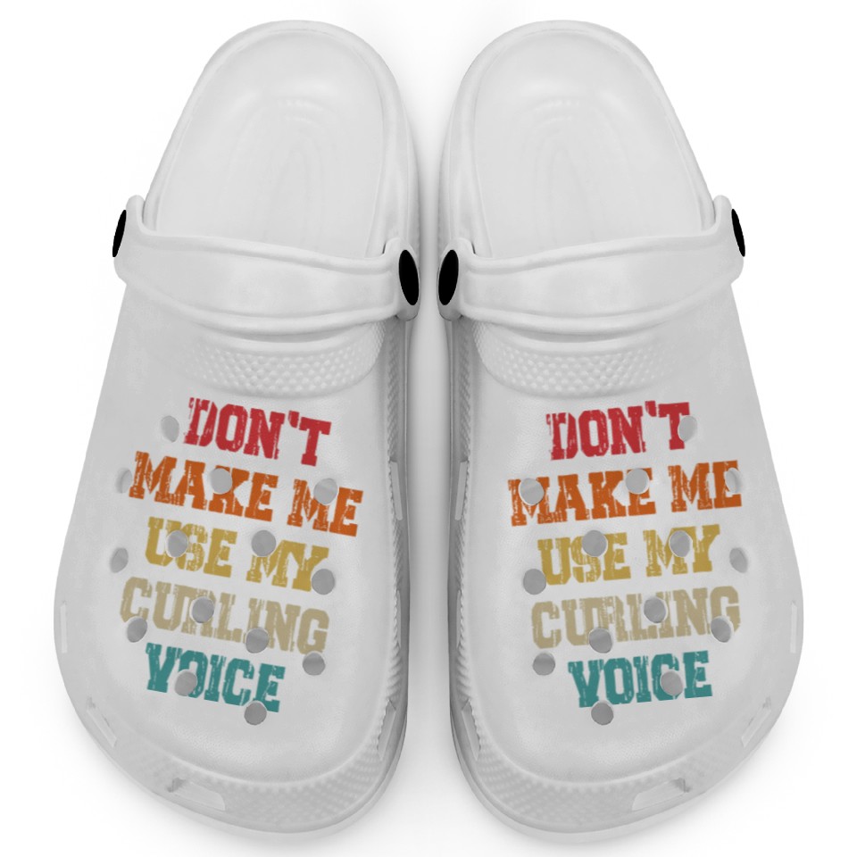 Shop for impressive Don't Make Me Use My Curling Voice Clogs or see more Clogs products right now on Printblur to enjoy your happiness!