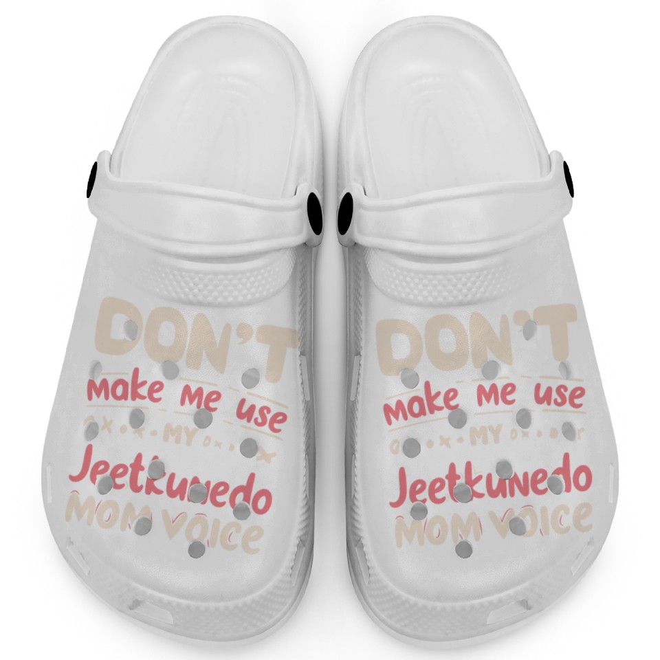 You are viewing an exclusive and elegant product Don't Make Me Use My JEET KUNE DO Mom Voice Clogs For Kids WHITE belong theme Clogs at Printblur
