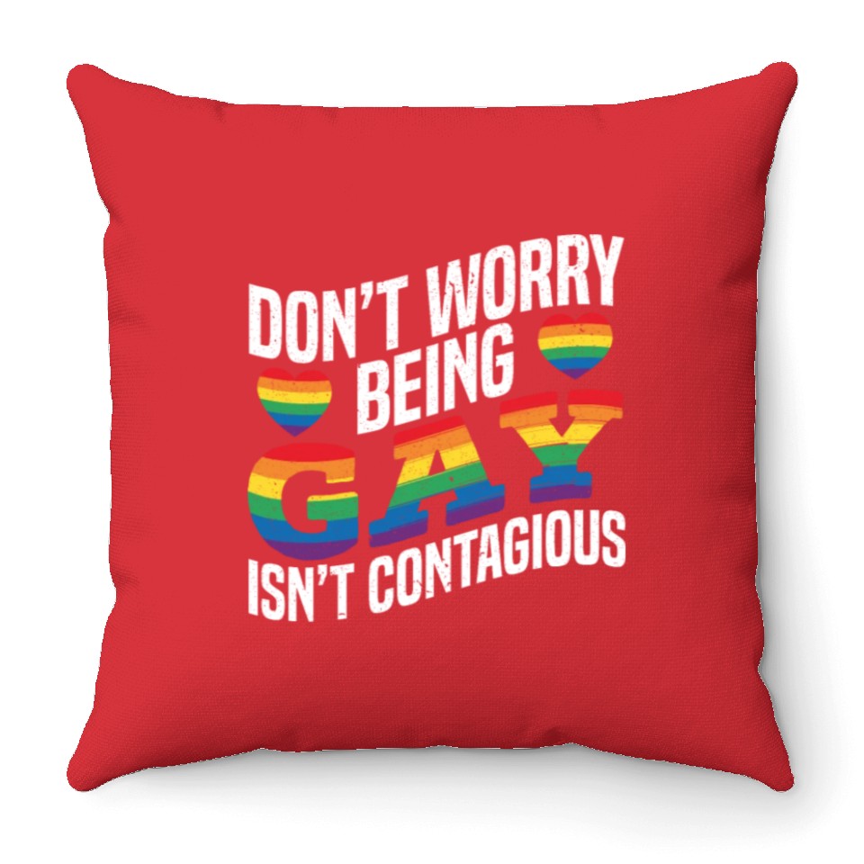 Shop for impressive Don't Worry Being Gay Isn't Contagious Pride LGBTQ Throw Pillows or see more Throw Pillows products right now on Printblur to enjoy your happiness!