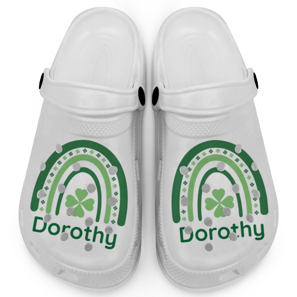 You are seeing a unique and impressive product Dorothy Clover Charm Boho Rainbow Clogs For Kids WHITE belong theme Clogs at Printblur