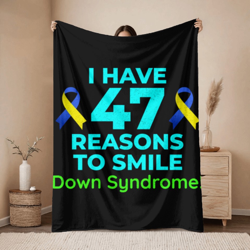 Shop for attractive Down Syndrome Awareness 47 Reasons to Smile Throw Blankets or see more Throw Blankets products on https://printblur.com right now!