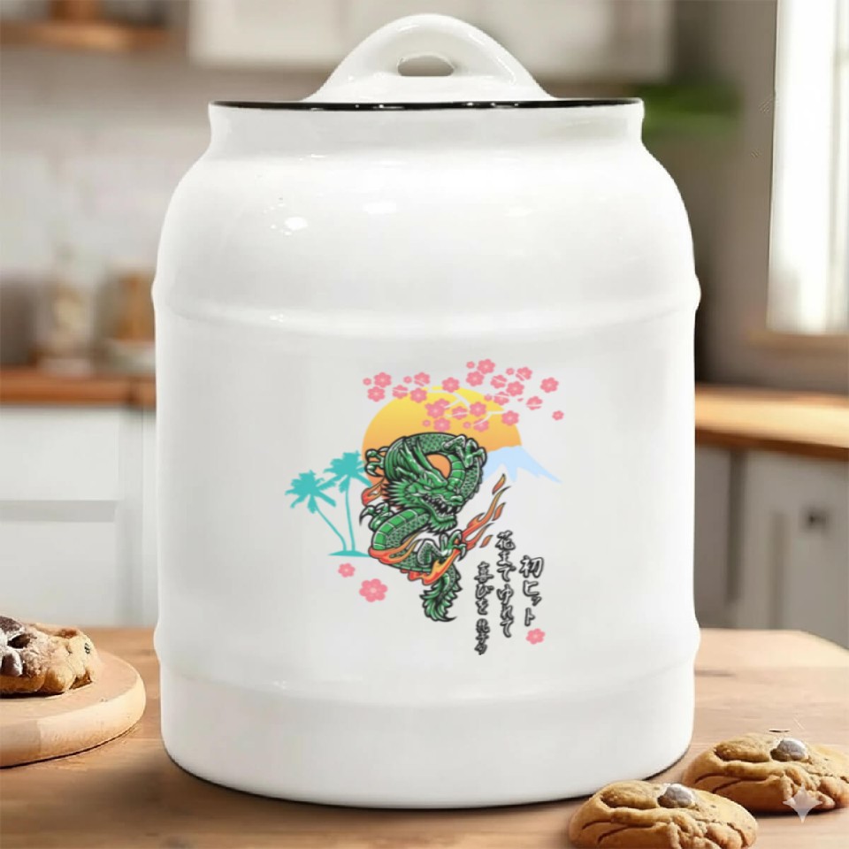 Buy eye-catching Dragon Sun Cherry Blossom | Japanese Culture Ceramic Cookie Jars or see more Ceramic Cookie Jars products at Printblur shop now to explore many surprises from our shop!