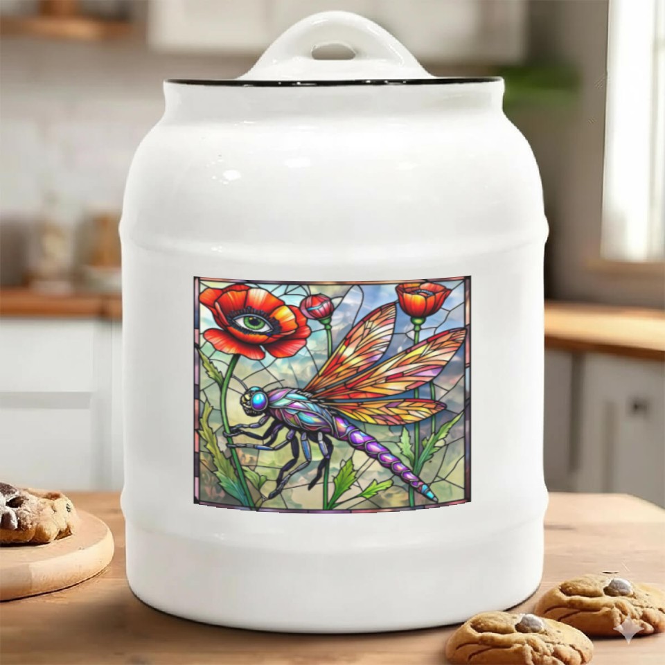 You are shopping for a stunning and trendy product Dragonfly stained glass poppy flower insect eye Ceramic Cookie Jars For belong theme Ceramic Cookie Jars at Printblur