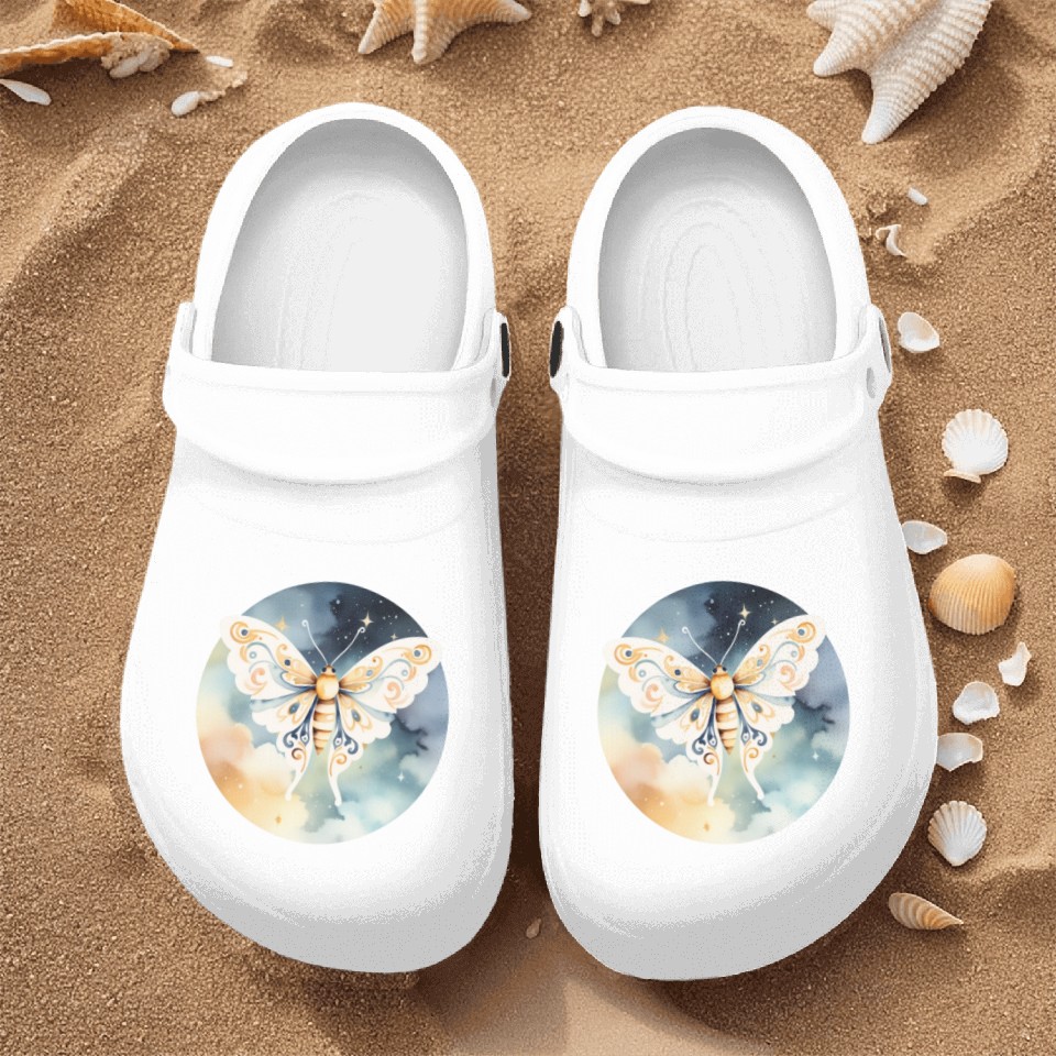 Dreamlike Flight: A Moth's Dance Among the Stars Nurse Clogs