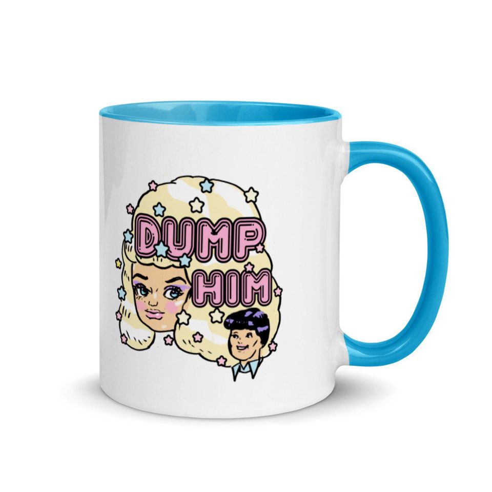 Buy stunning Dump him mug, 80s vintage pastel mug, retro barbie mug or see more Mugs products at Printblur right now to receive many amazing discounts!