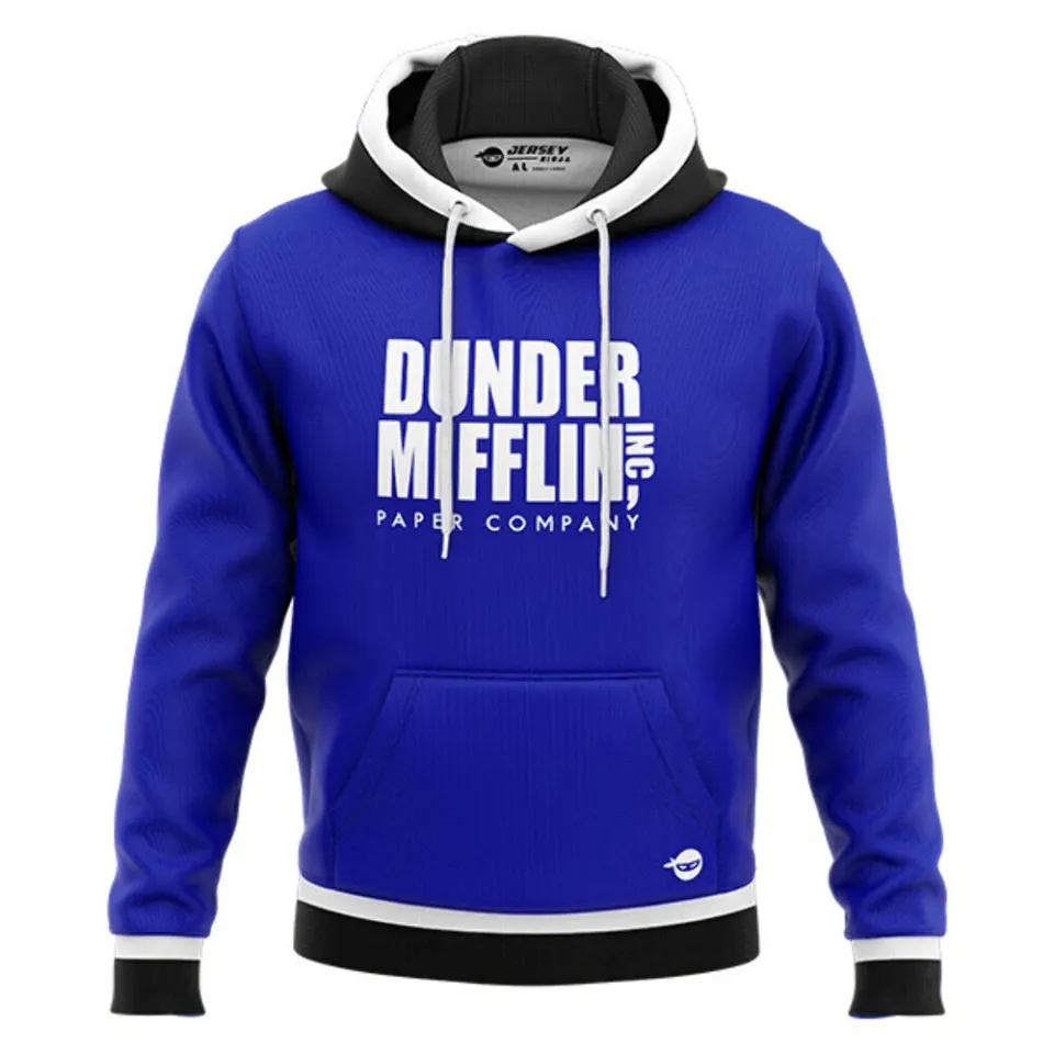 Shop for attractive Dunder Mifflin Blue Performance Hoodie or see more 3D Hoodies products on https://printblur.com right now!