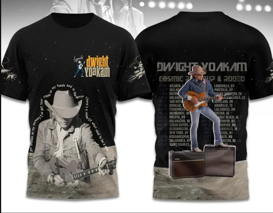 Buy eye-catching Dwight Yoakam Rodeo Tour 2025 3D T-Shirt or see more 3D T Shirts products at Printblur shop now to explore many surprises from our shop!