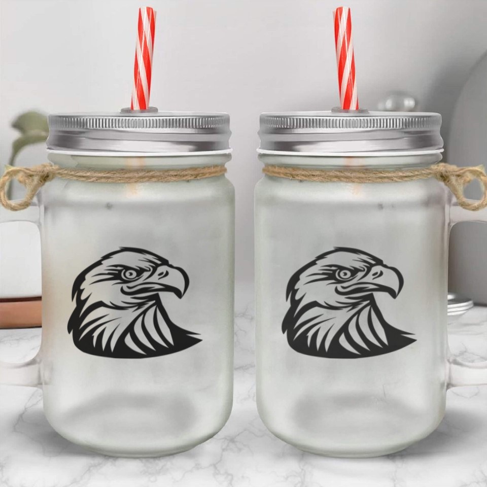 The item hot trend you're looking at is Eagle head tattoo style Mason Jar Cups For belong theme Mason Jar Cups at Printblur
