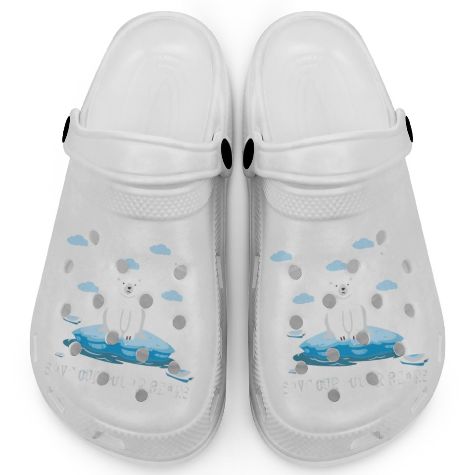 You're looking at the eye-catching product Earth Day Climate Change Save Our Polar Bears Clogs For Kids WHITE belong theme Clogs at Printblur