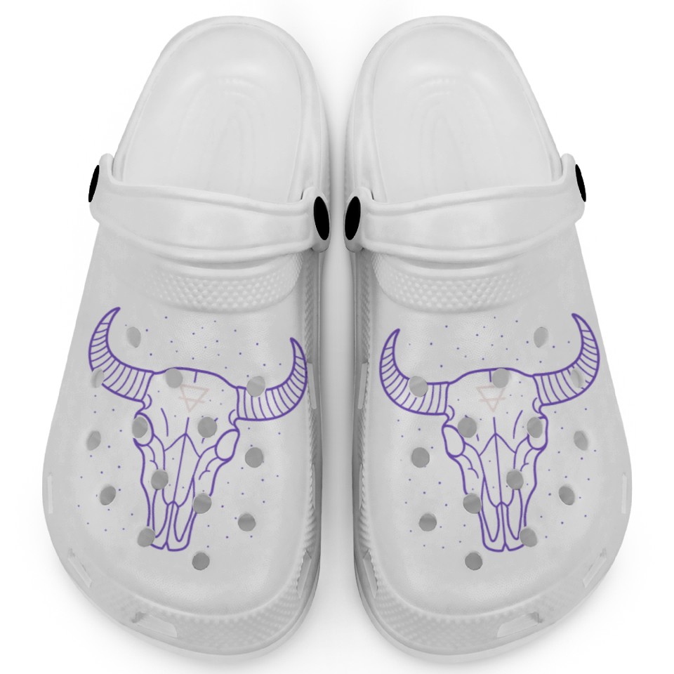 You are viewing an exclusive and elegant product Earth Symbol Bull Skull | Mystic Minimal Art Clogs For Kids WHITE belong theme Clogs at Printblur
