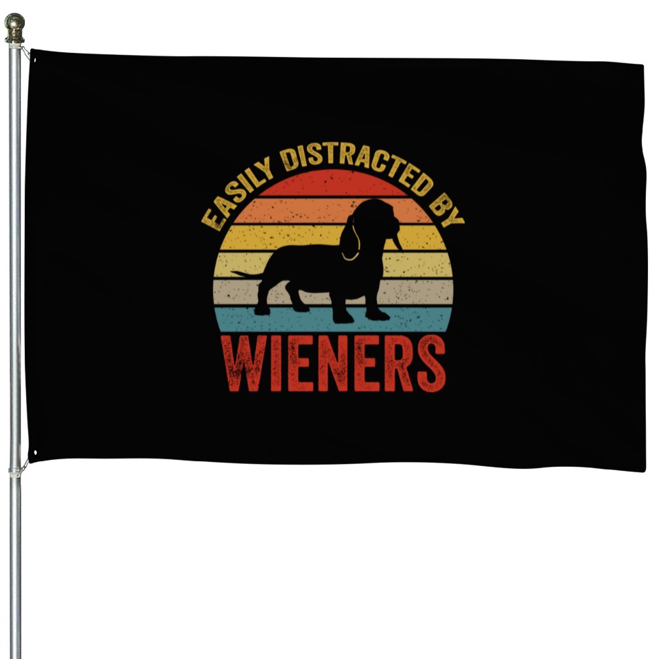 You're looking at the eye-catching product Easily Distracted By Wieners For Dog Lover House Flags For Black belong theme House Flags at Printblur