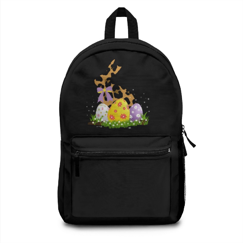 You're taking a peek at the product Easter Bunny Leopard Easter egg Rabbit Easter Day Backpacks For Black belong theme Backpacks at Printblur
