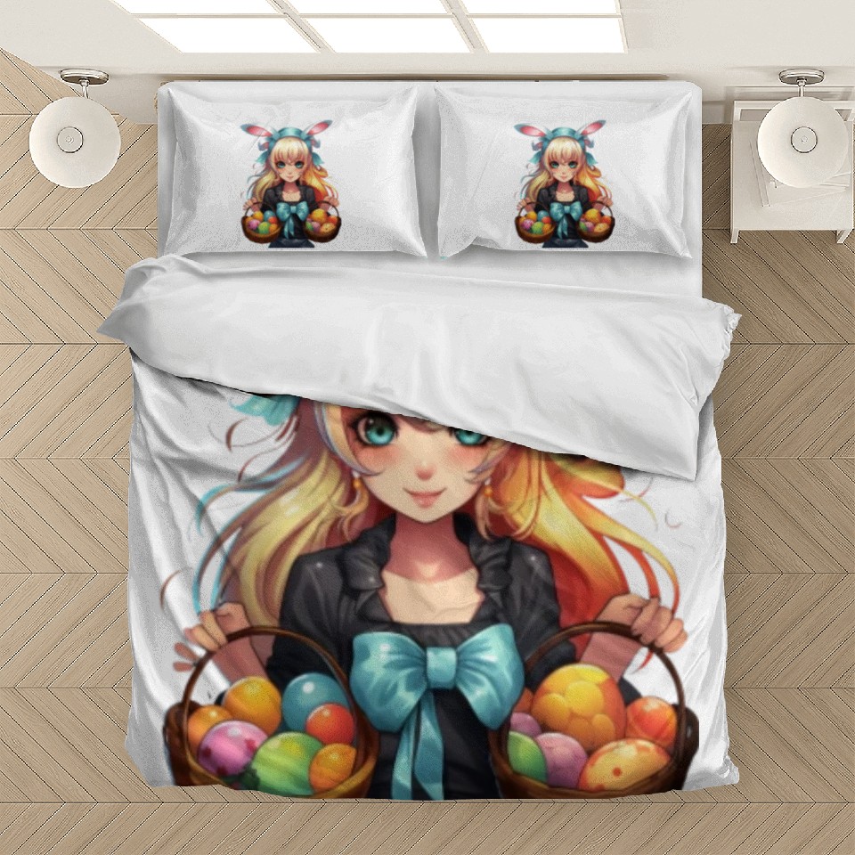 Own fascinating Easter Day Anime Girl Bunny Ear Easter Egg Hunt Bedding Sets or see more Bedding Sets products now from Printblur shop to enjoy your shopping time!