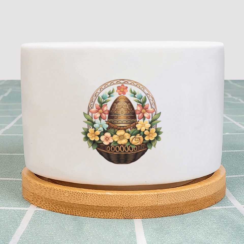 The item hot trend you're looking at is Easter Day Easter Egg Basket Mandala Art Egg Hunt Plant Pots For WHITE belong theme Plant Pots at Printblur