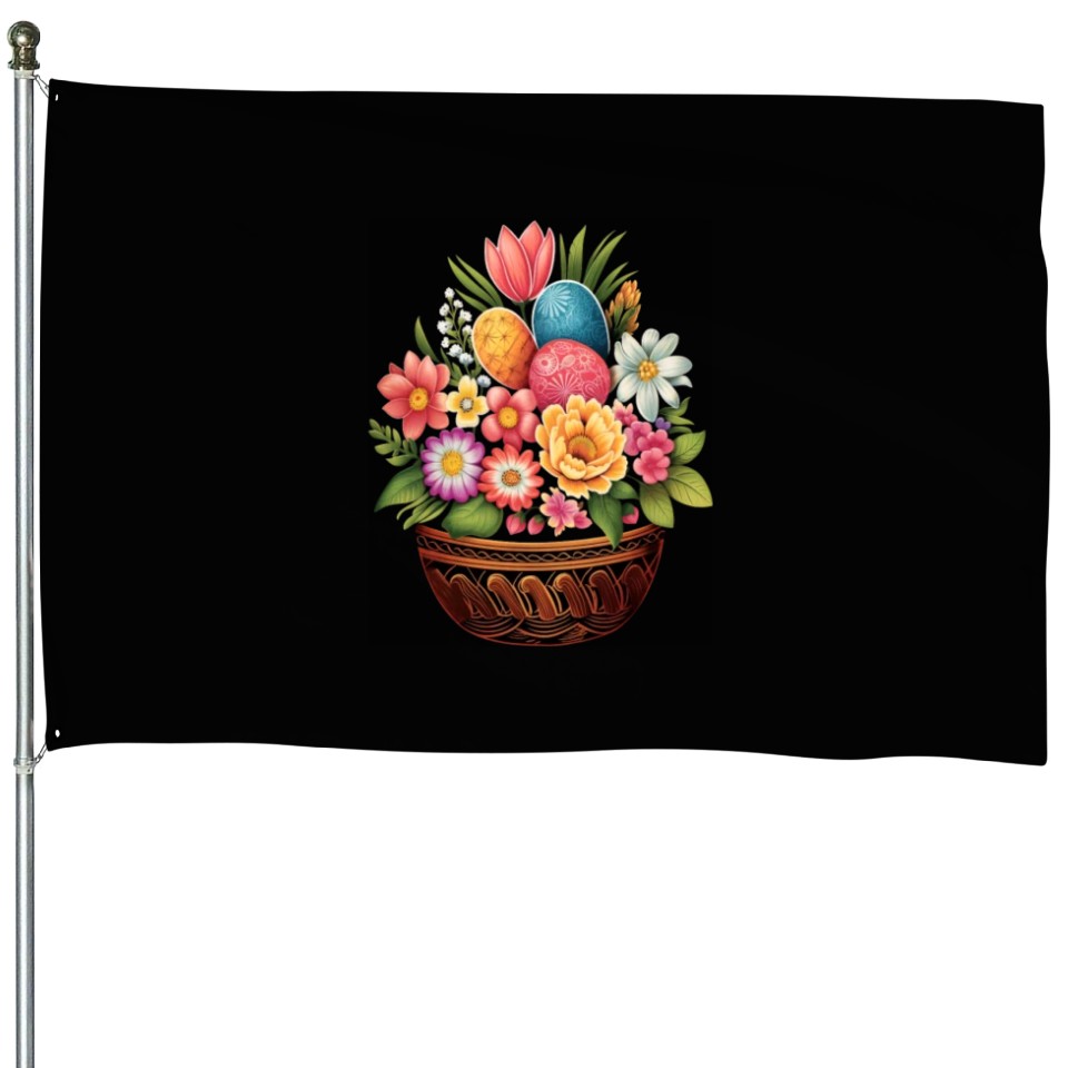 You are viewing one of the trendiest products Easter Day Easter Egg Basket Spring Flowers House Flags For Black belong theme House Flags at Printblur