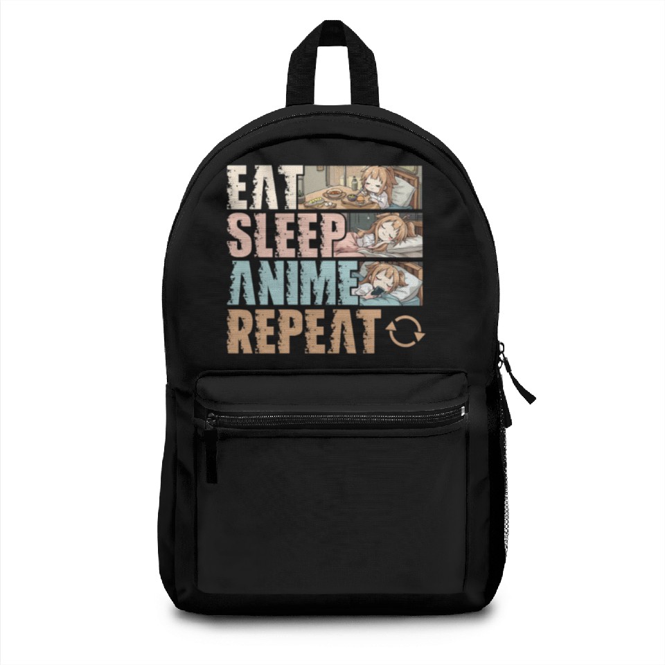 You're taking a peek at the product Eat Sleep Anime Repeat Funny Otaku Backpacks For Black belong theme Backpacks at Printblur