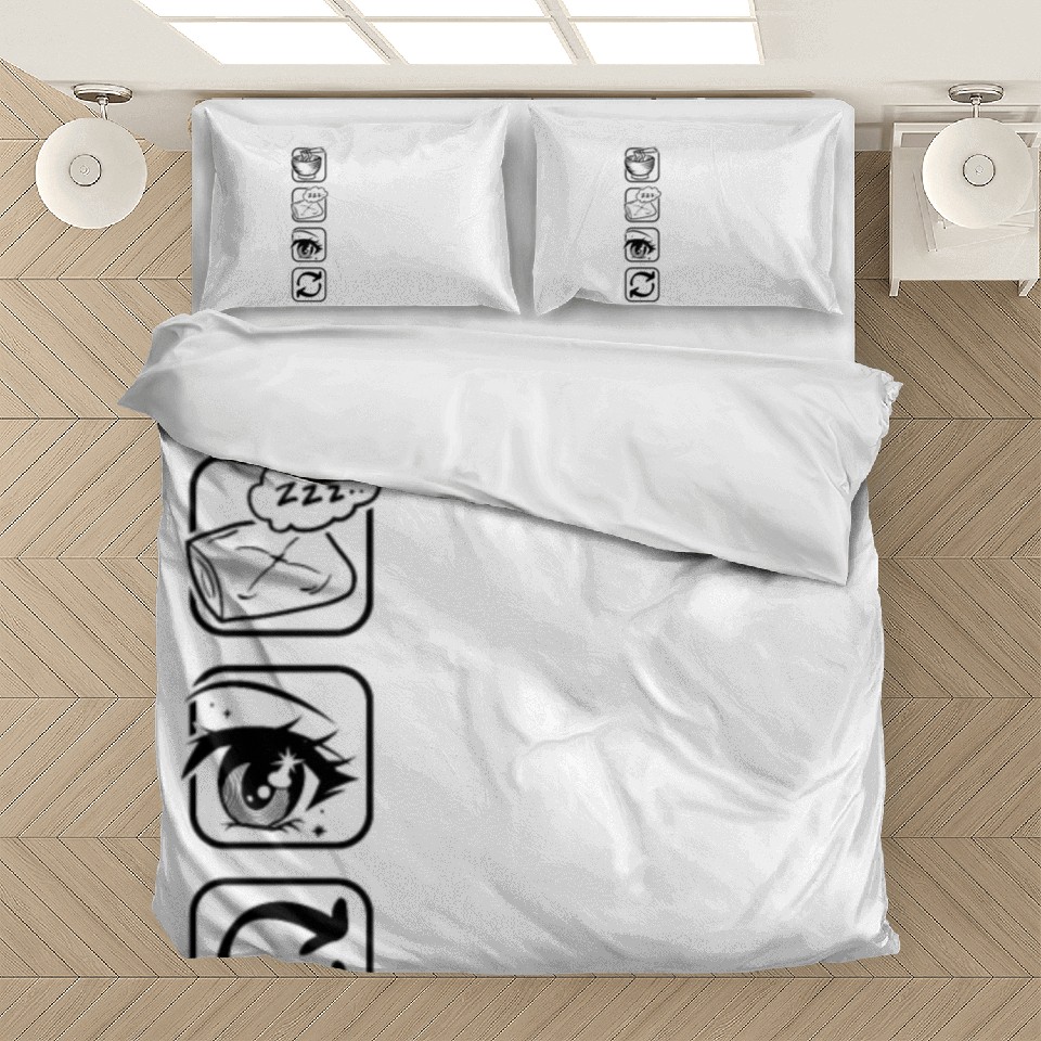 You're searching for a one-of-a-kind product Eat Sleep Anime Repeat Japan Manga Bedding Sets For WHITE belong theme Bedding Sets at Printblur