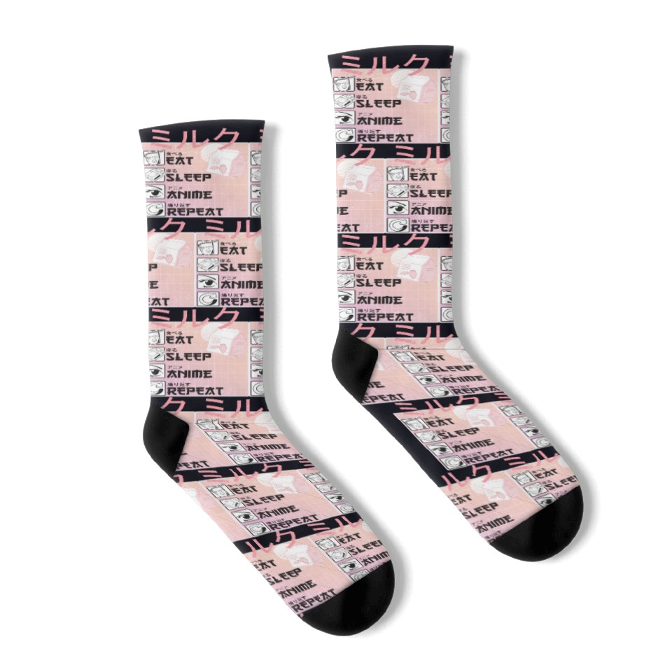 Own fascinating Eat Sleep Anime Repeat Straweberry Milk Japanese Socks or see more Socks products now from Printblur shop to enjoy your shopping time!