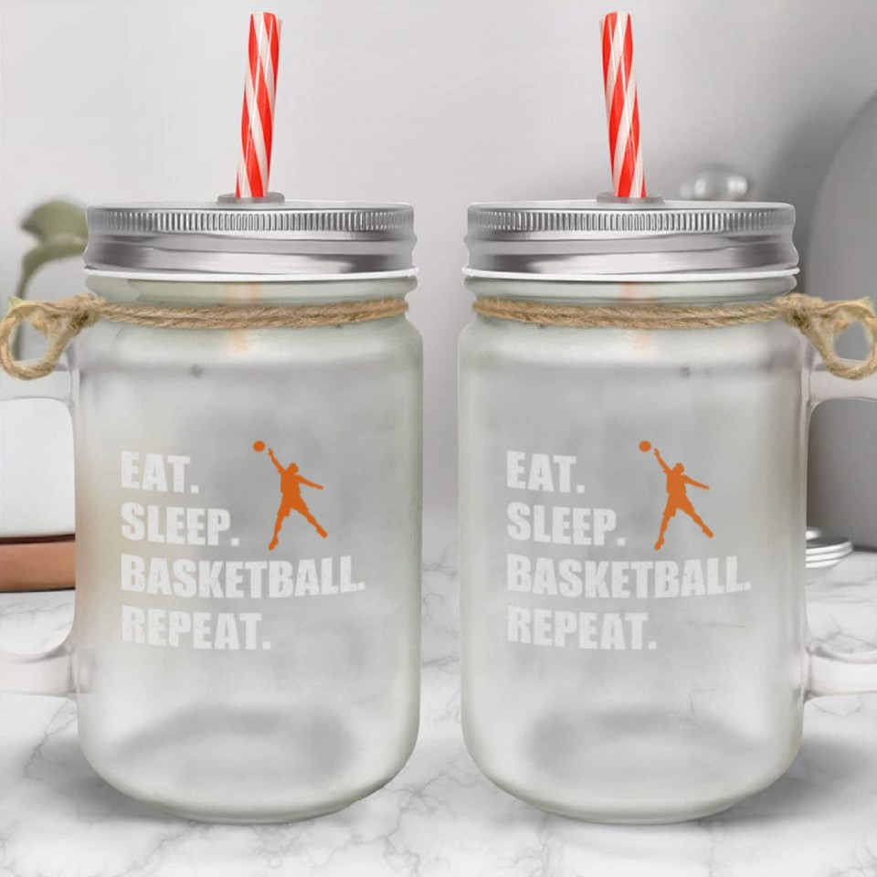 Own fascinating Eat Sleep Basketball Repeat Funny Basketball Mason Jar Cups or see more Mason Jar Cups products now from Printblur shop to enjoy your shopping time!