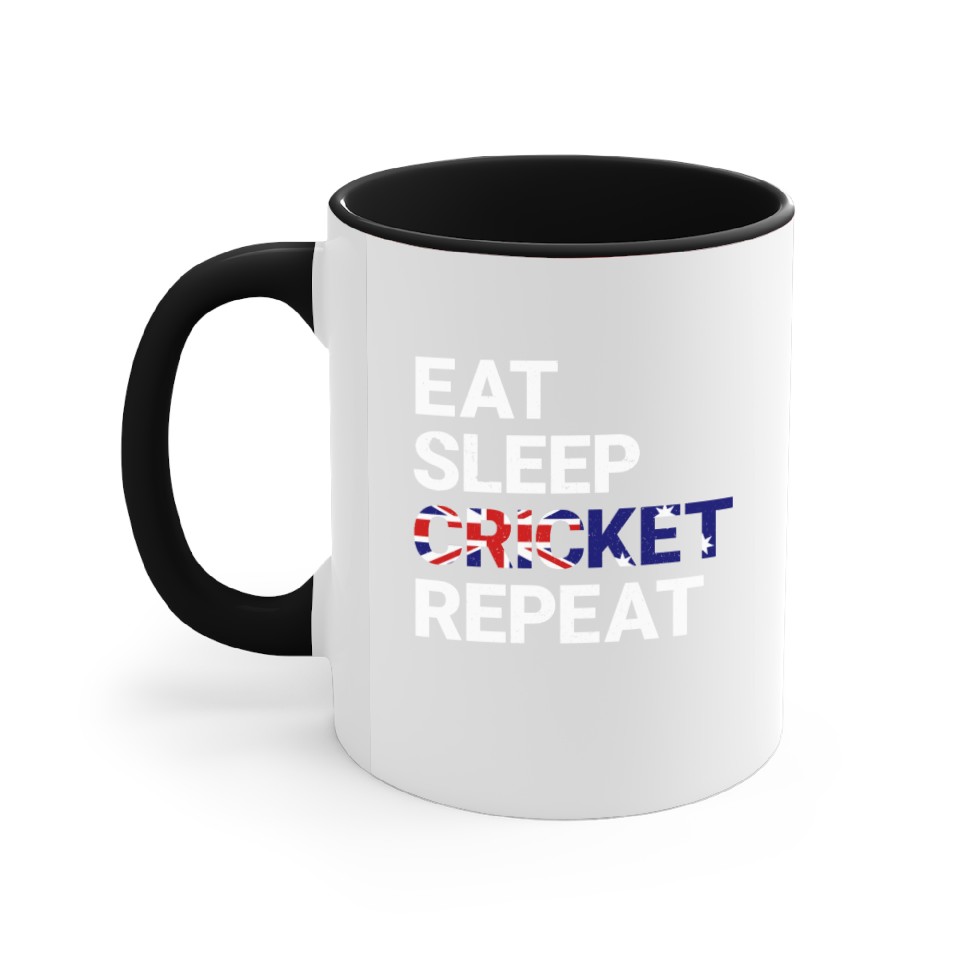 You are viewing an exclusive and elegant product Eat Sleep Cricket Repeat AUS Flag Sports Gift Accent Mugs For Black belong theme Accent Mugs at Printblur