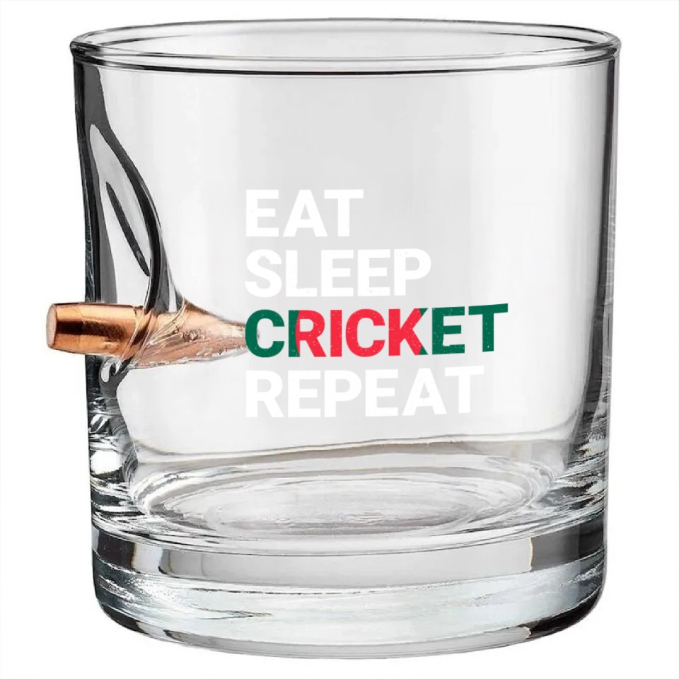 Eat Sleep Cricket Repeat BD Flag Sports Gift Bullet Whiskey Glasses