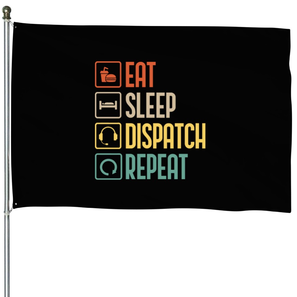 Buy eye-catching Eat Sleep Dispatch Repeat Funny Dispatcher gift House Flags or see more House Flags products at Printblur shop now to explore many surprises from our shop!