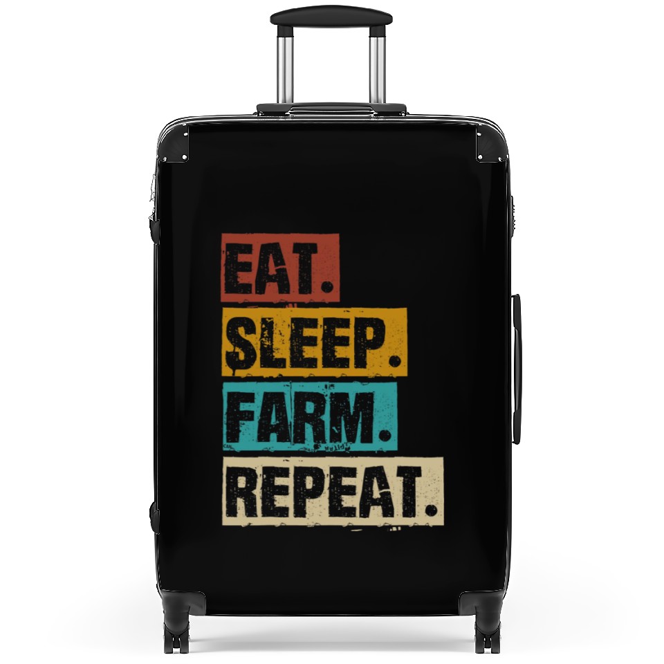 You're searching for a one-of-a-kind product Eat Sleep Farm Repeat Retro Vintage Farmer Farming Suitcases For Black belong theme Suitcases at Printblur