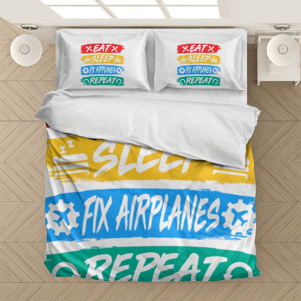 Buy eye-catching Eat Sleep Fix Airplanes Repeat Aircraft Mechanic Bedding Sets or see more Bedding Sets products at Printblur shop now to explore many surprises from our shop!
