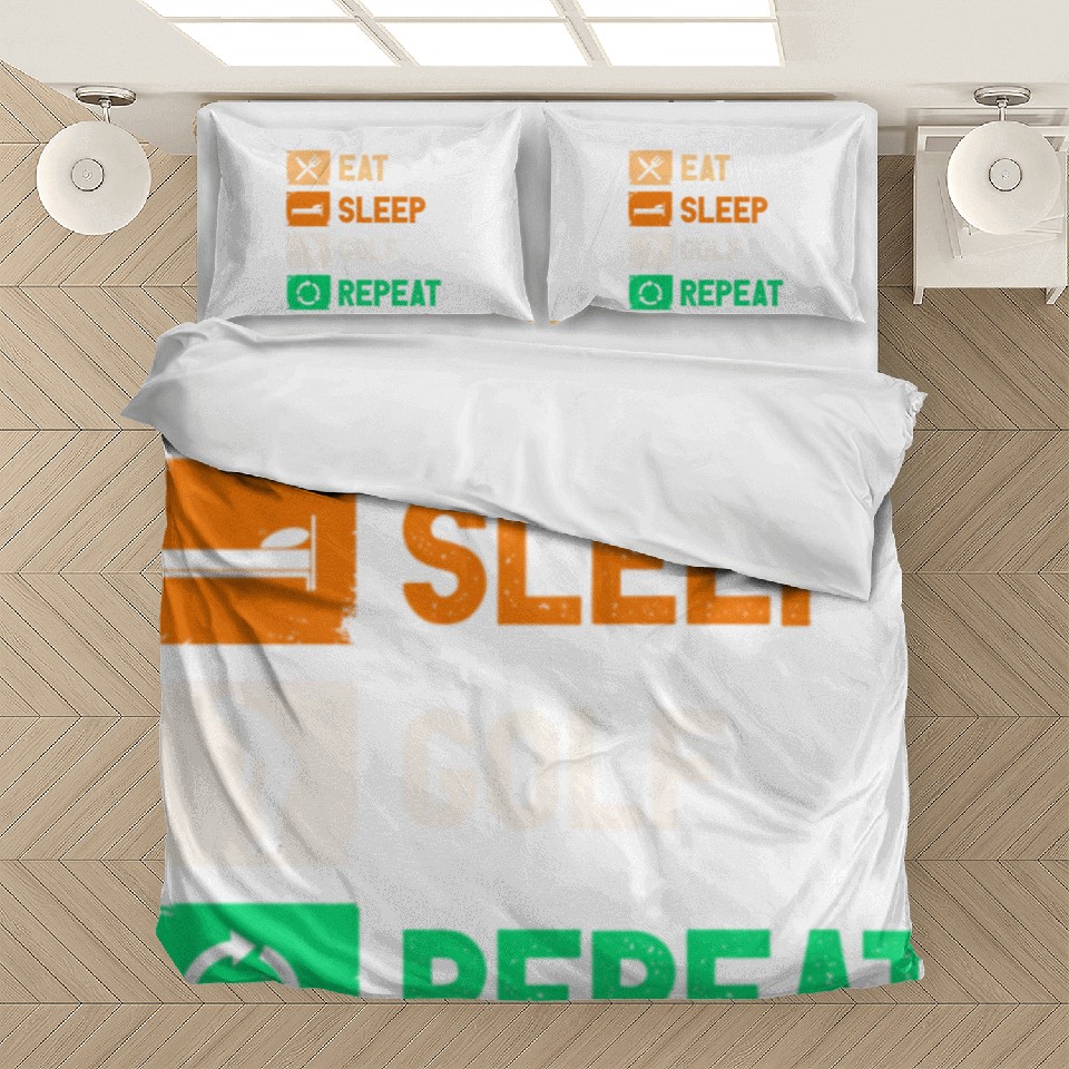 You are viewing one of the trendiest products Eat Sleep Golf Repeat Funny Gaming Bedding Sets For WHITE belong theme Bedding Sets at Printblur