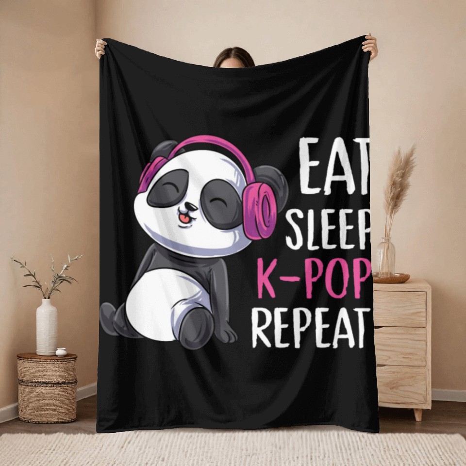 You are shopping for a stunning and trendy product Eat Sleep K-pop Repeat Panda bear korean music Throw Blankets For Black belong theme Throw Blankets at Printblur