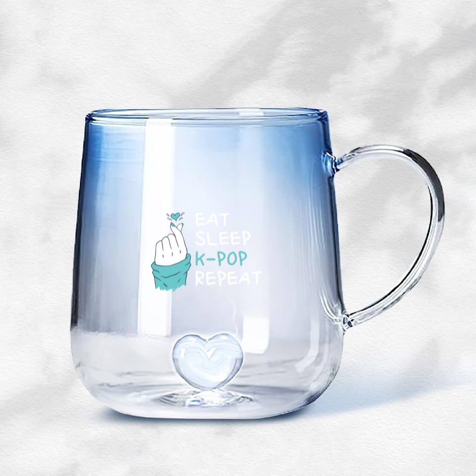 Shop for impressive Eat Sleep Kpop Repeat Finger Heart Korean Pop Musi Gradient Glass Mugs or see more Gradient Glass Mugs products right now on Printblur to enjoy your happiness!