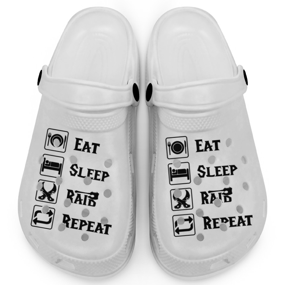 You are viewing one of the trendiest products Eat sleep raid repeat world of warcraft present Clogs For Kids WHITE belong theme Clogs at Printblur