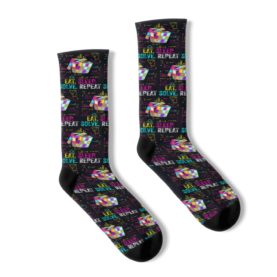 Own fascinating Eat Sleep Solve Repeat Math Speed Cubing Genie Socks or see more Socks products now from Printblur shop to enjoy your shopping time!
